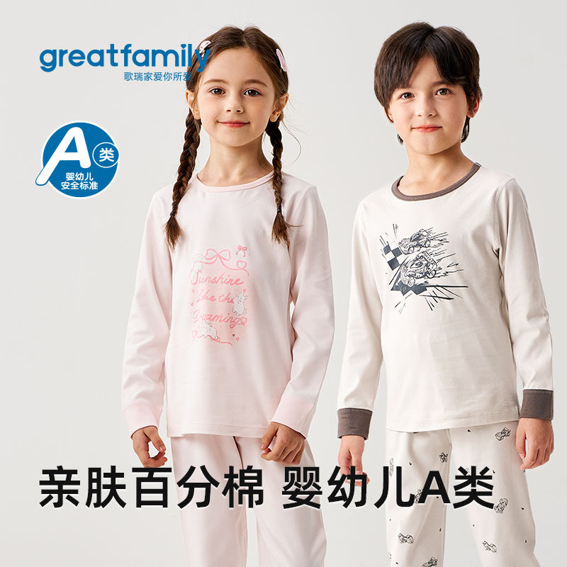 歌瑞家25秋男女童新款家居服套装