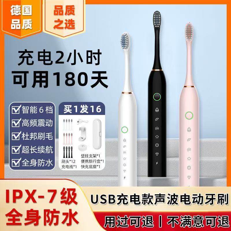 新款电动牙刷充电款男女学生成人款软毛防水声波震动家用情侣牙刷