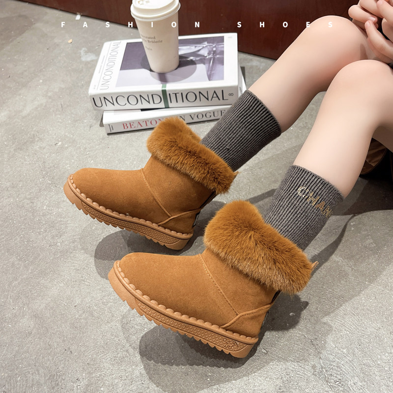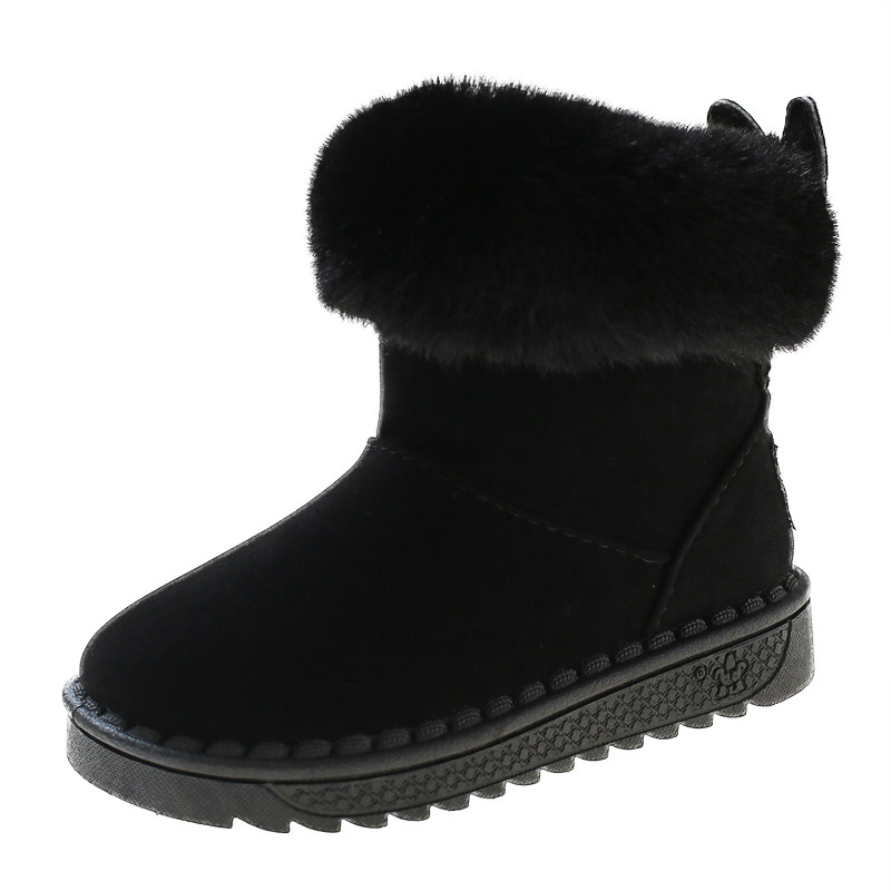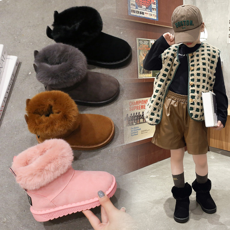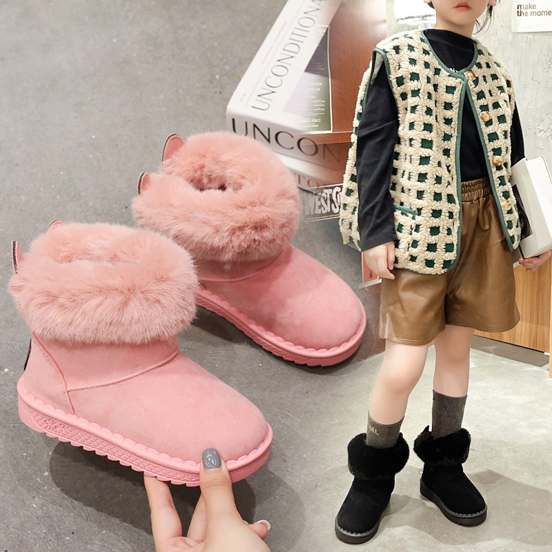 秋冬男女宝宝可爱外穿东北雪地靴加绒加厚保暖可爱兔子后跟装饰鞋