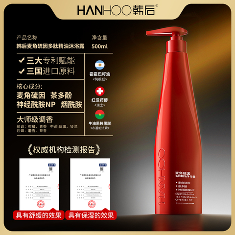 "多位明星代言,韩后正装洗护,添加麦角硫因多肽,角鲨烷,茶叶提取物等多种配方,清爽去屑、控油保湿、植萃养护、净澈舒养,持久留香,告别油!塌!痒!落!洗完头发蓬松又柔顺!无痛拥有高颅顶,硬挺三天无压力! "