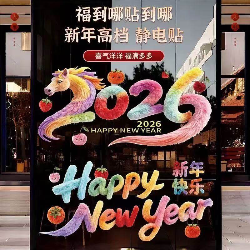 2026新年快乐春节橱窗玻璃贴新年马年装饰用品静电贴过年玻璃贴纸
