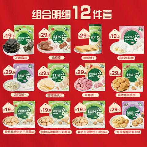 【券后79到手12件,折6.58/件】12件套儿童零食大礼包,宝宝馋了礼盒送1-2岁婴儿幼儿辅食食谱母婴达人联合推荐,无添加盐,鲜虾肉制作,让口感更加香脆,宝宝的专属美味,非膨化,非油炸,独立小包装,宝妈更放心