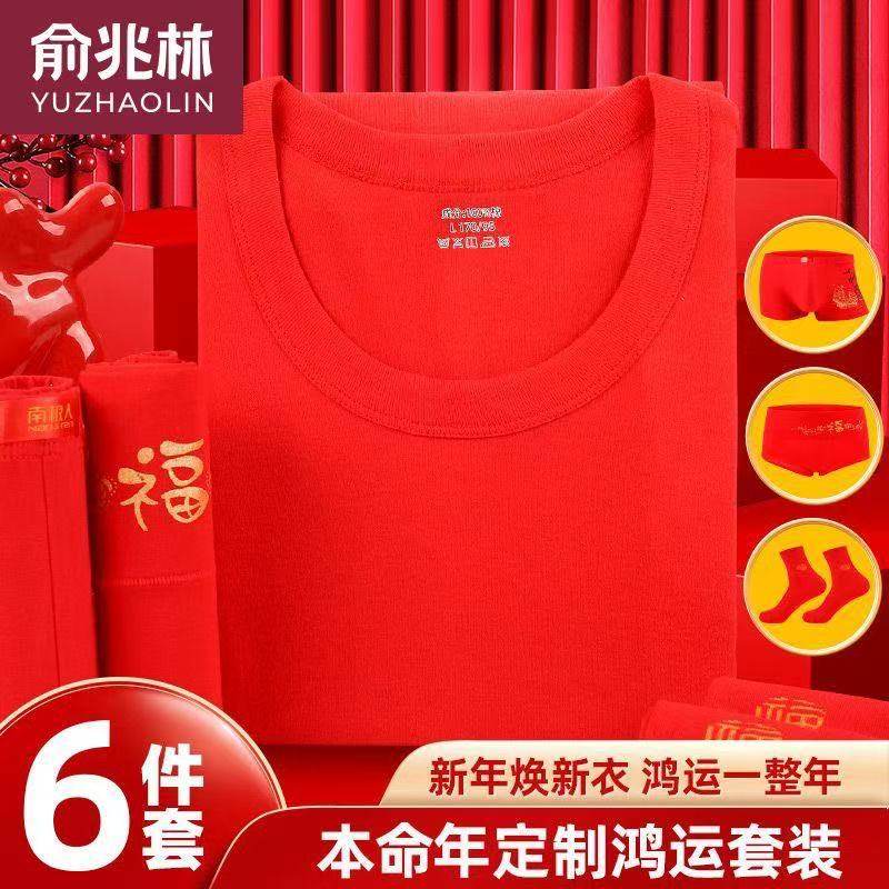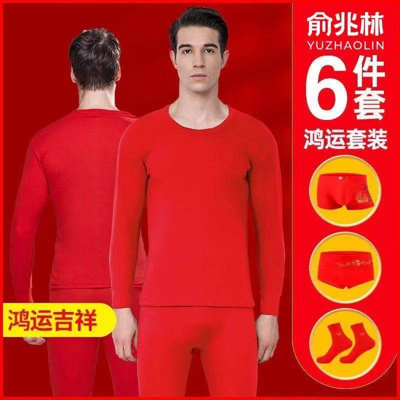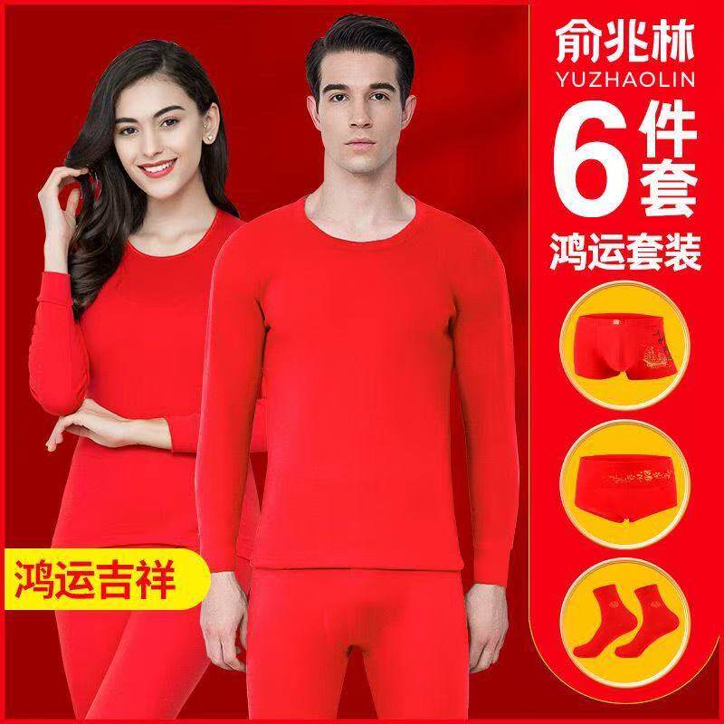 本命年秋衣秋裤男士套装纯棉大红色情侣结婚保暖内衣女套装