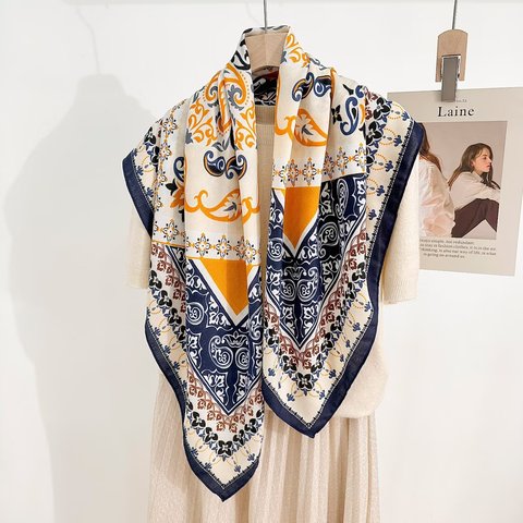 90x90大方巾女2025新款丝巾秋冬季洋气时尚包头围巾披肩两用围脖
