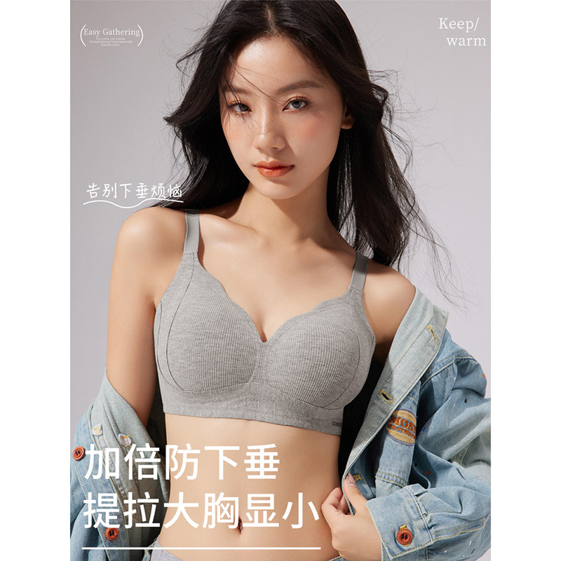 余柔!提拉聚拢女士内衣文胸!精选罗纹面料,内里轻磨毛。穿着舒适!高弹肩带,侧收副乳更显薄!!V型波浪边,无痕贴肤,减龄好搭配!!果冻条提拉,加倍防下垂!!爱美女生必备!!