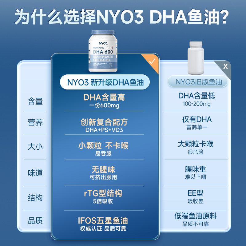 下单领取满298减48元优惠券,参与满3件打7.85折,立减54元优惠活动,88会员9.5折,消费券减25元,下单3件,实付低至211.45元,单件价格低至70.48元!NYO3挪威DHA深海鱼油,学生增强补脑记忆力,omega3胶囊,6倍高含量,特别添加‘脑黄金’PS,认真更专注!
