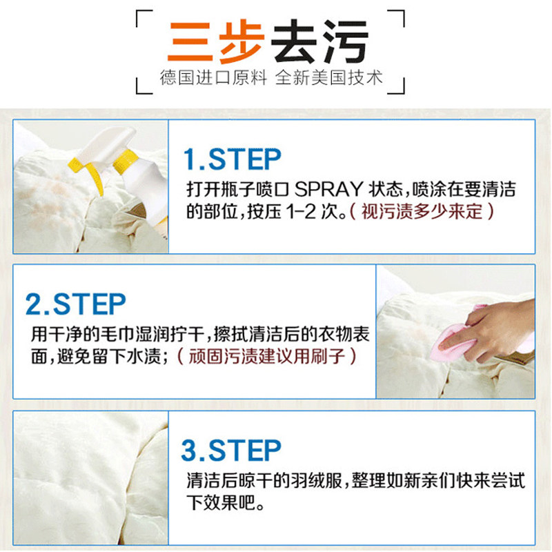 【淘金币下单可抵0.59元,实际到手9.31元,到手500ml】羽绒服干洗剂,免水洗不伤衣,喷一喷轻松除渍。强力去油渍,不留痕迹