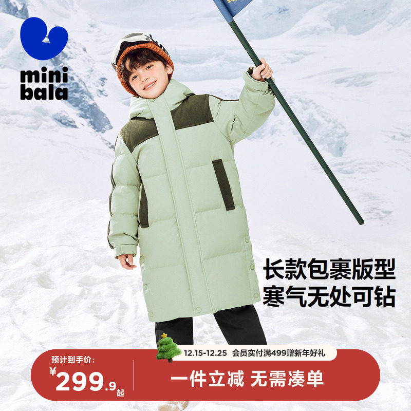 【叠消费券金币233.6】,迷你巴拉巴拉男童女童羽绒外套冬季新款发热连帽长款羽绒服保暖