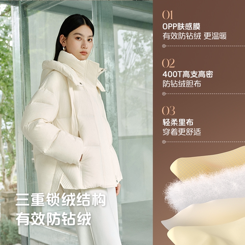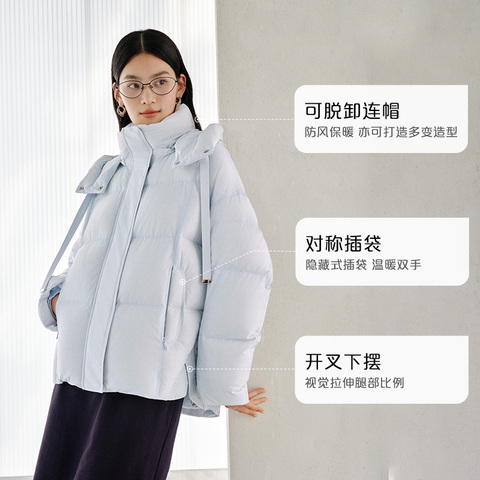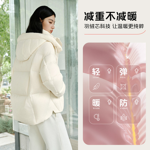 艾莱依2025年冬季新款羽绒服女士时尚鸭绒可脱卸连帽泡芙短款外套
