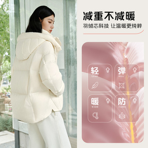 艾莱依时尚连帽短款泡芙羽绒服女