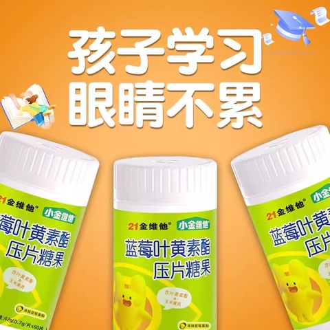 【页面价79.9券20+立减40+淘金币=19.3学生有立减5到手14.3】21金维他儿童叶黄素酯咀嚼片,温和配方,成人儿童家庭共享护眼新选择~家庭装高性价比,每日2片,清甜蓝莓味,孩子也爱吃的护眼小零食~