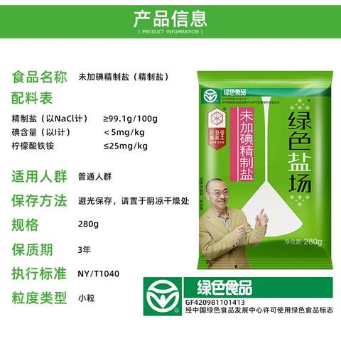 280g*10袋!绿色盐场精制盐!!仅7.9!柔和纯净,细腻速溶,可快速渗透至食材内部,亦能还原食材的鲜美口感,适用于多种美食的烹饪!北纬30°左右核心开采,纯净矿区,矿井隔绝污染,原盐高纯度,少杂质,创新工艺,匠心精作!