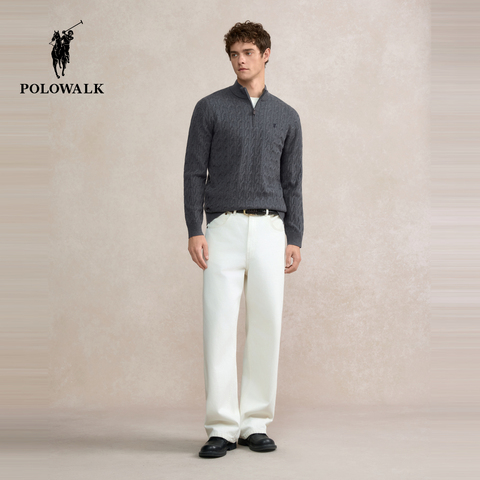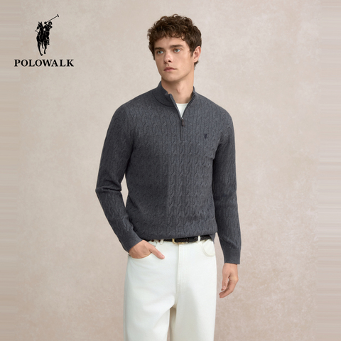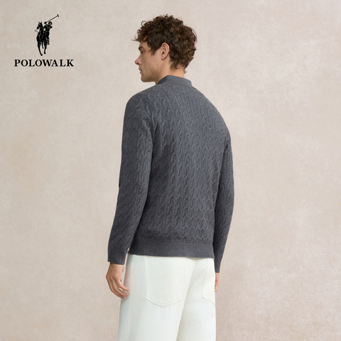 POLOWALK男装针织衫2025秋季新品商务休闲绞花立领套头半拉链上衣