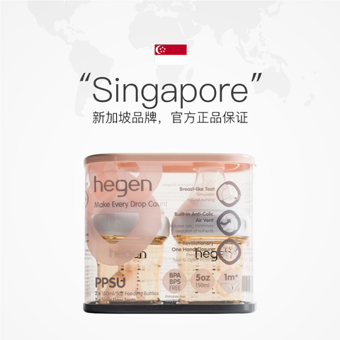 【vip叠399-25母婴老客券,再返12购物金,到手198.6元,折99.3/只】hegen婴儿PPSU奶瓶150毫升*2新生儿宝宝进口奶嘴宽口,奶瓶界爱马仕,好用~PPSU材质,防胀气~
