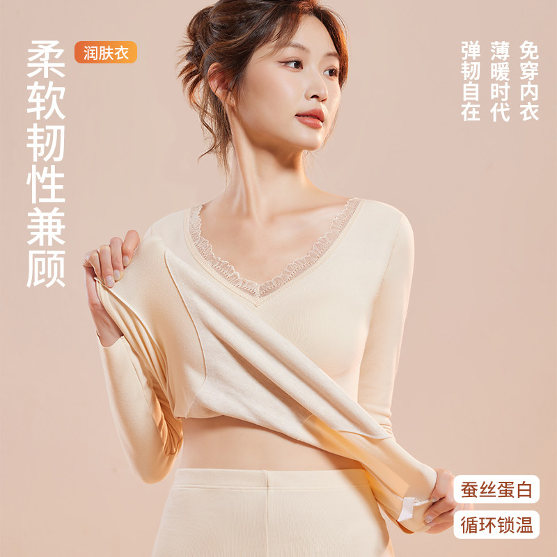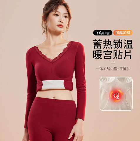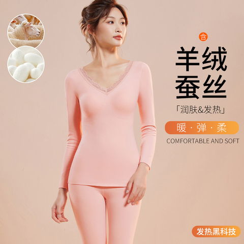 保暖套装内衣女士V领带胸垫无痕
