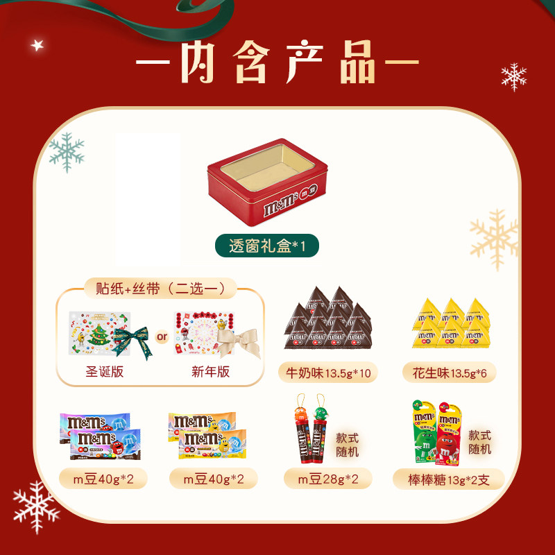 【夏之光推荐】m豆牛奶巧克力圣诞透窗DIY精美礼盒(赠送贴纸+丝带),咬一口,口感醇厚,奶香味浓郁,每颗巧克力豆里都藏着满满的幸福感!