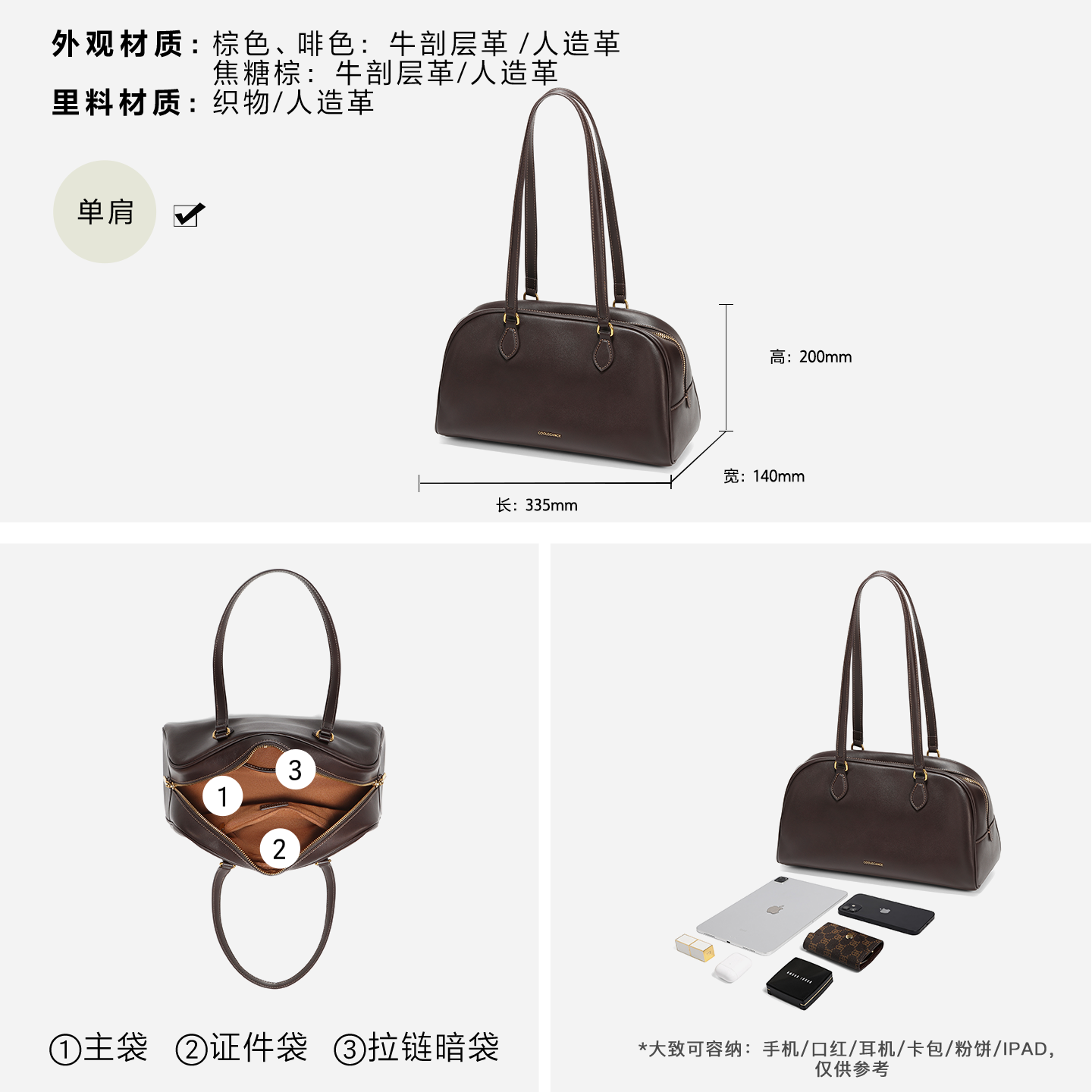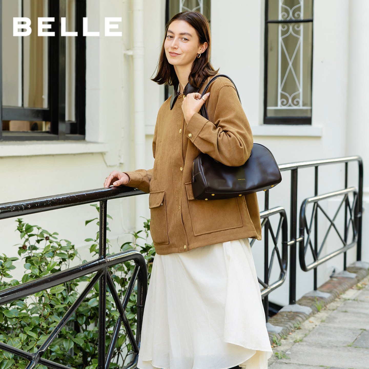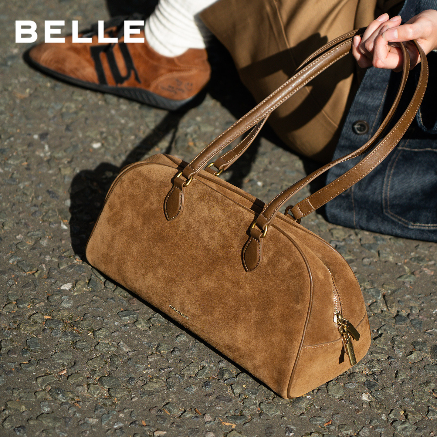 百丽包包女25新款商场同款反绒麂皮通勤大号单肩波士顿包BL862DX5