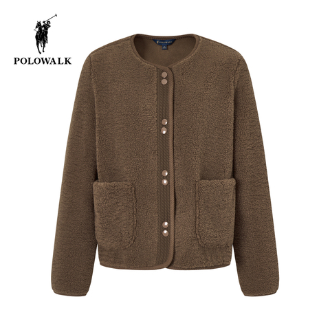 POLOWALK女式外套2025秋季新品摇粒绒百搭圆领简约气质绒感外套女