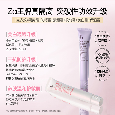 6.0升级Za姬芮美白防水防晒隔离霜妆前素颜霜修黄提亮祛斑敏肌