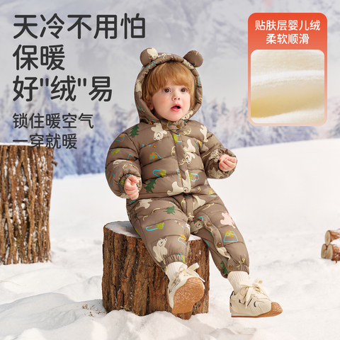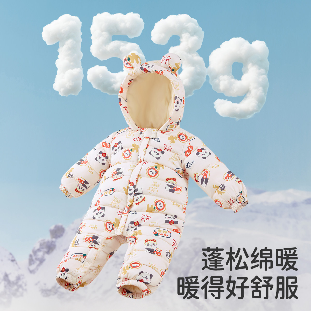 婧麒这款婴儿连体衣采用加绒加厚夹棉设计,搭配连帽款式,保暖性出色,适合寒冷季节外出穿着。整体剪裁宽松舒适,活动自如,方便宝宝日常爬行与玩耍。面料柔软亲肤,呵护娇嫩肌肤,细节处体现贴心工艺。品牌专注母婴用品,注重安全与实用性,是冬季宝宝保暖穿搭的可靠选择。