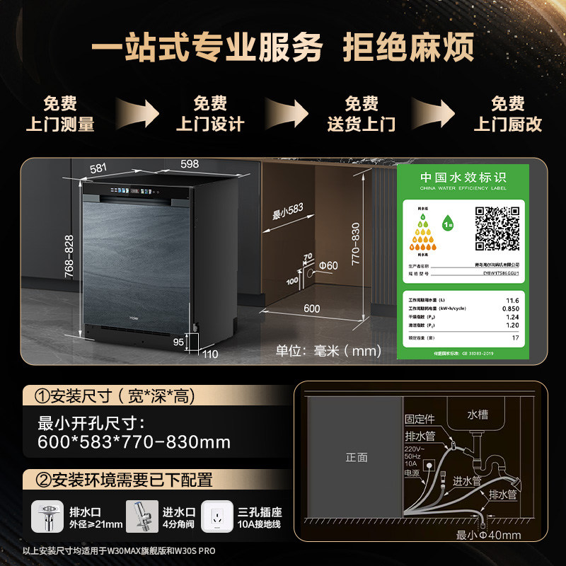 [W30Max旗舰版]海尔洗碗机17套嵌入式家用智能全自动超大容量消毒,