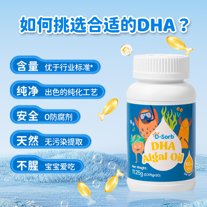 30粒装,Dsorb滴适宝dha藻油软胶囊婴幼儿dha海藻油专用儿童宝宝学生孕妇