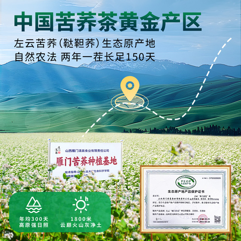 雁门清高有机苦荞茶!山西高原产地,有机种植。饭后一杯,暖胃助消化,茶汤清香不涩口。有机认证,原料安心,独立小包随身带。