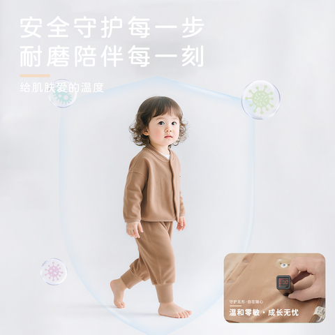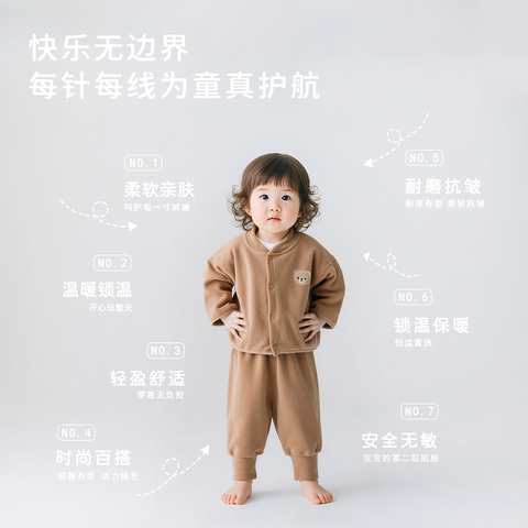 券后36.9,跳跳兔韩版儿童家居服奥粒绒宝宝套装纯色春秋外出服小童分体两件~