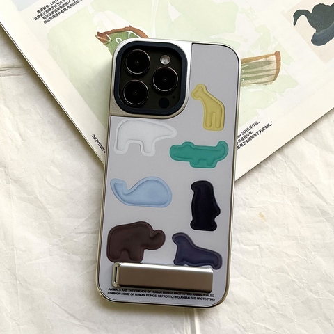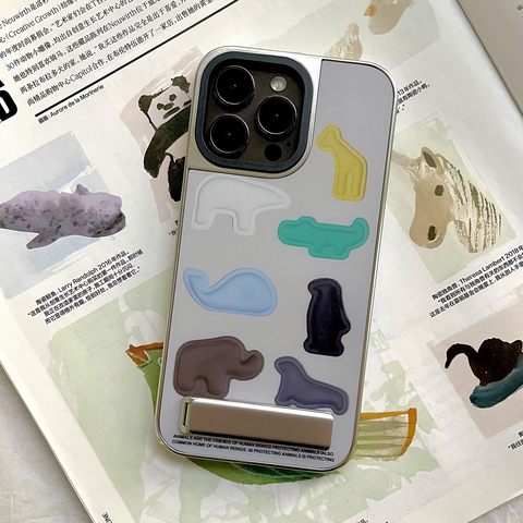 电镀动物支架壳适用于苹果17全包17pro创意16卡通15小众16pro时尚14pro艺术17promax高级14全包13pro可爱12