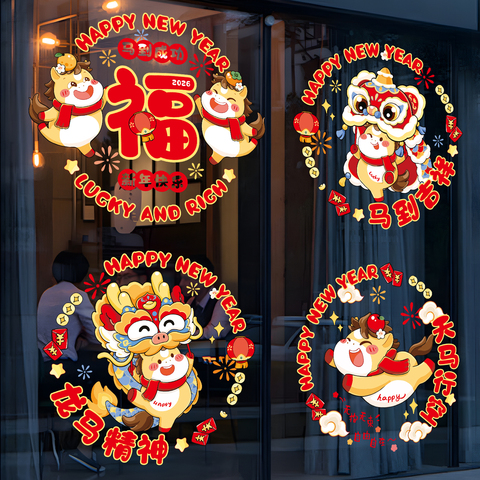 2026新款马年窗花静电贴,多种款式可选,马年窗花静电贴,多种款式随心选,装点新年氛围,轻松一贴,喜气盈门,限时优惠,错过等一年把仪式感送给自己,多款可供选择,简约造型明亮色彩,增添抹幸福韵味