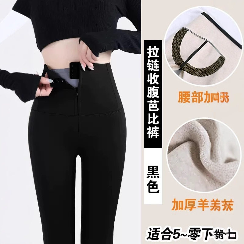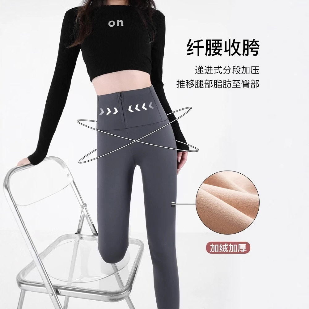 拉链收腹鲨鱼裤女秋冬季外穿加绒加厚打底裤高腰紧身芭比提臀裤子