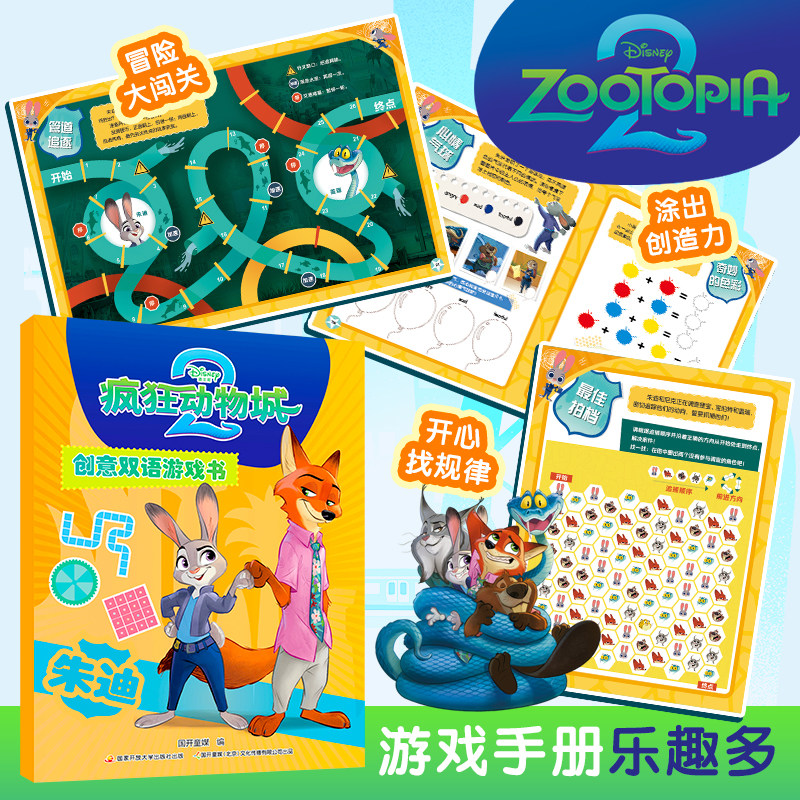 疯狂动物城2不能错过的迪士尼双语经典电影故事,新书官方授权创意双语游戏书朱迪尼克全2册赠吧唧/DIY涂色书/大冒险棋盘书