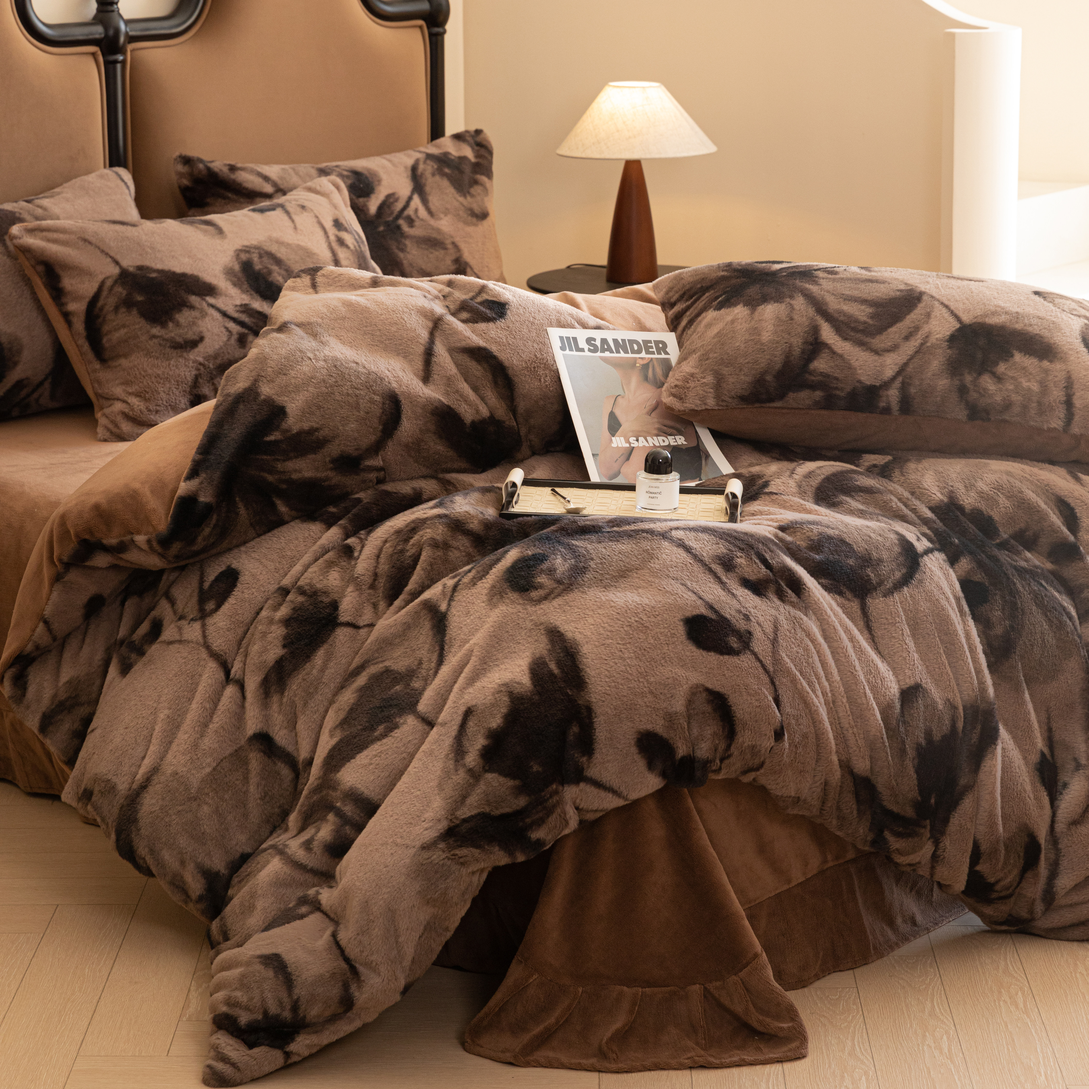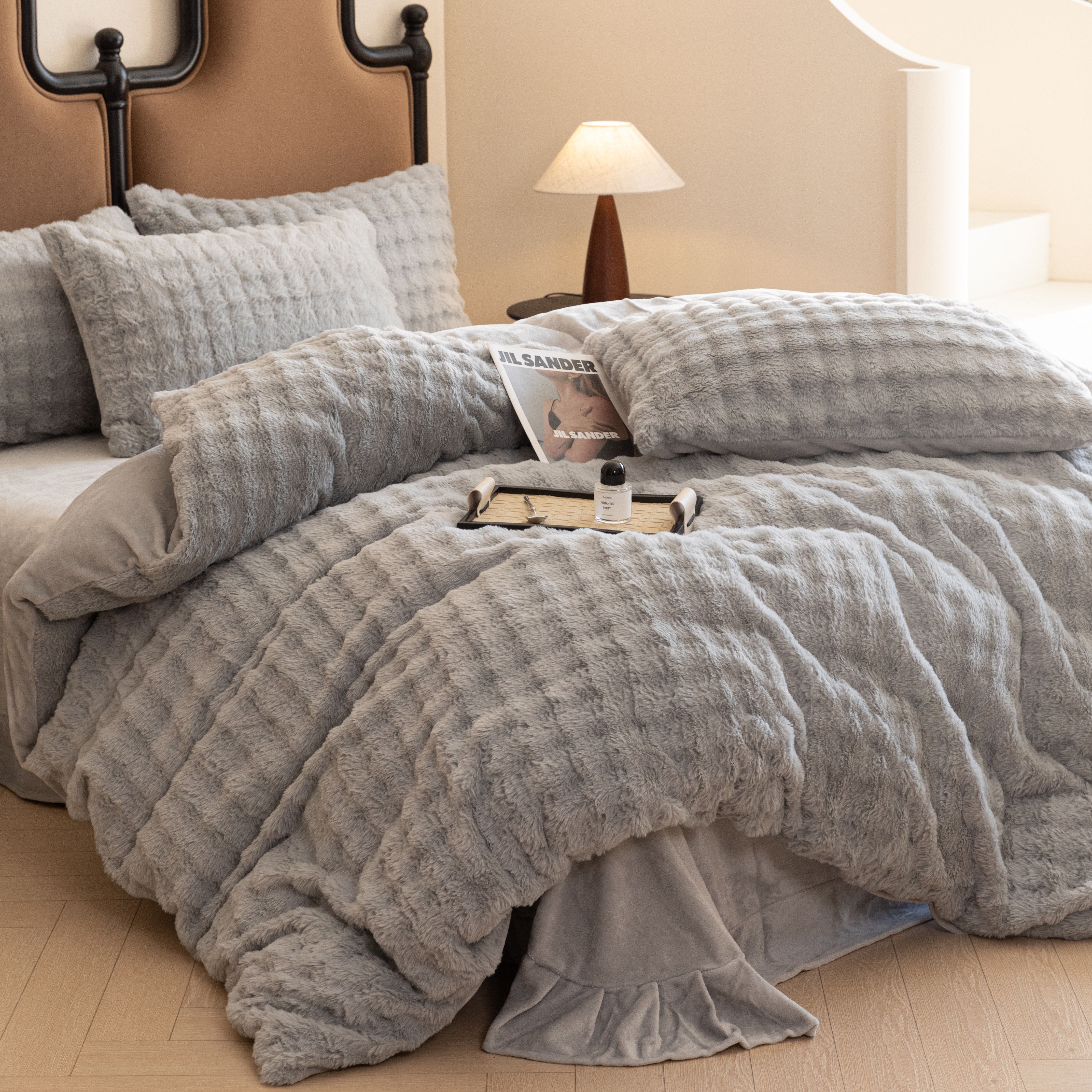 无印独白冬季兔绒雕花绒AB面四件套床单双人被套加厚四件套