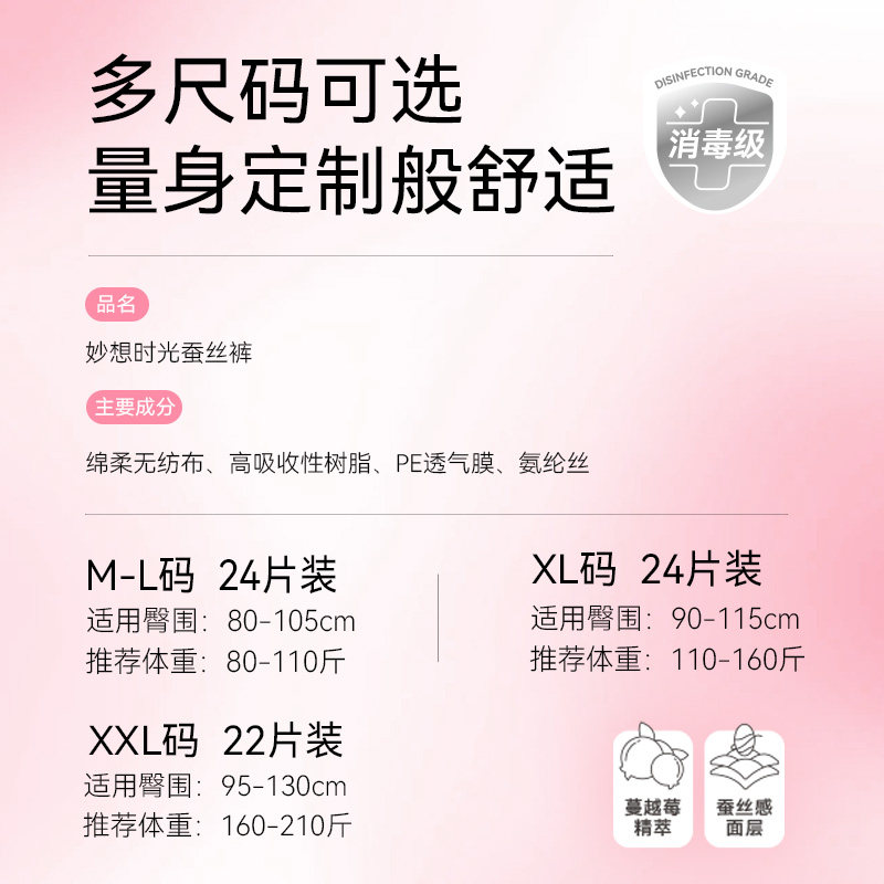 【优于新国标】B5蔓越莓蚕丝裤 【售价】:¥33.90 【券后】:¥29.90 【优惠券】:¥4 推荐理由:0刺激性0致敏,记忆棉般无感温柔,超级防侧漏,贴合人体曲线,感觉不到姨妈来,用过一次就不想换了 👉复制这条信息打开【手机淘宝APP】即可领券购买:/