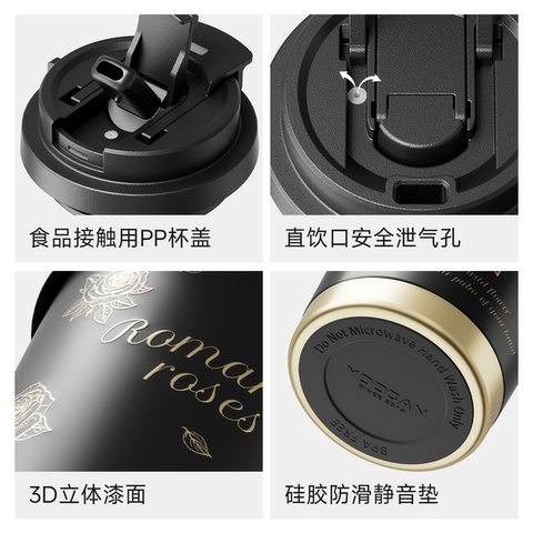 【原价298-优惠券74-立减149-官方立减36=到手价39.叠加消费券到手34.13】限时价格!高颜值裕川保温杯黑金玫瑰,超赞~