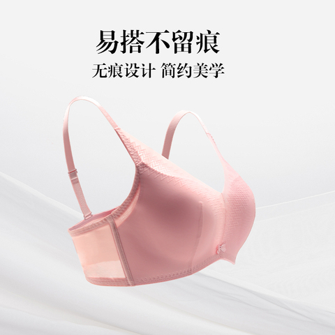 KISSY氧心无痕轻薄冰丝山茶花内衣女无钢圈侧收副乳聚拢美背文胸