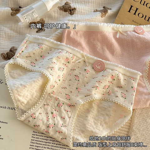 10A抗菌内裤少女小碎花亲肤透气全棉抗菌裆不夹屁股三角短裤QY