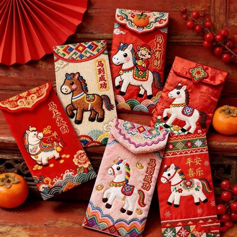 立体刺绣的小马栩栩如生,仿毛绒手感,拿在手里分量十足!新年包压岁钱、走亲访友都适配,颜值高又有年味,提前囤货备新年!