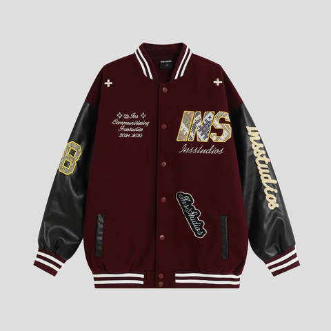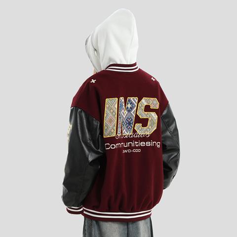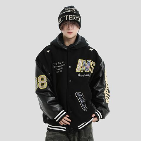 INSstudios 国潮牌情侣美式编织贴布刺绣LOGO棒球服夹棉夹克外套