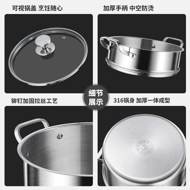 电磁炉适用 + 一体设计 + 食品级材质!!超.实用!容量大!耐高温!!锅体加厚,双耳设计方便拿取!!关键是316不锈钢材质!!