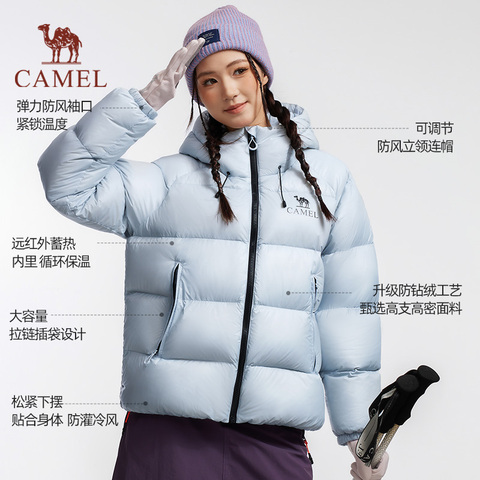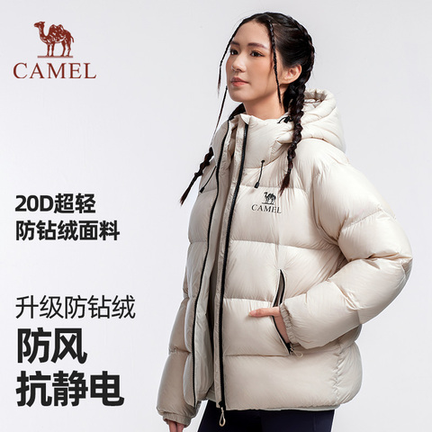 骆驼火山羽绒服女装2025冬季防寒女士短款加厚保暖防风连帽外套男