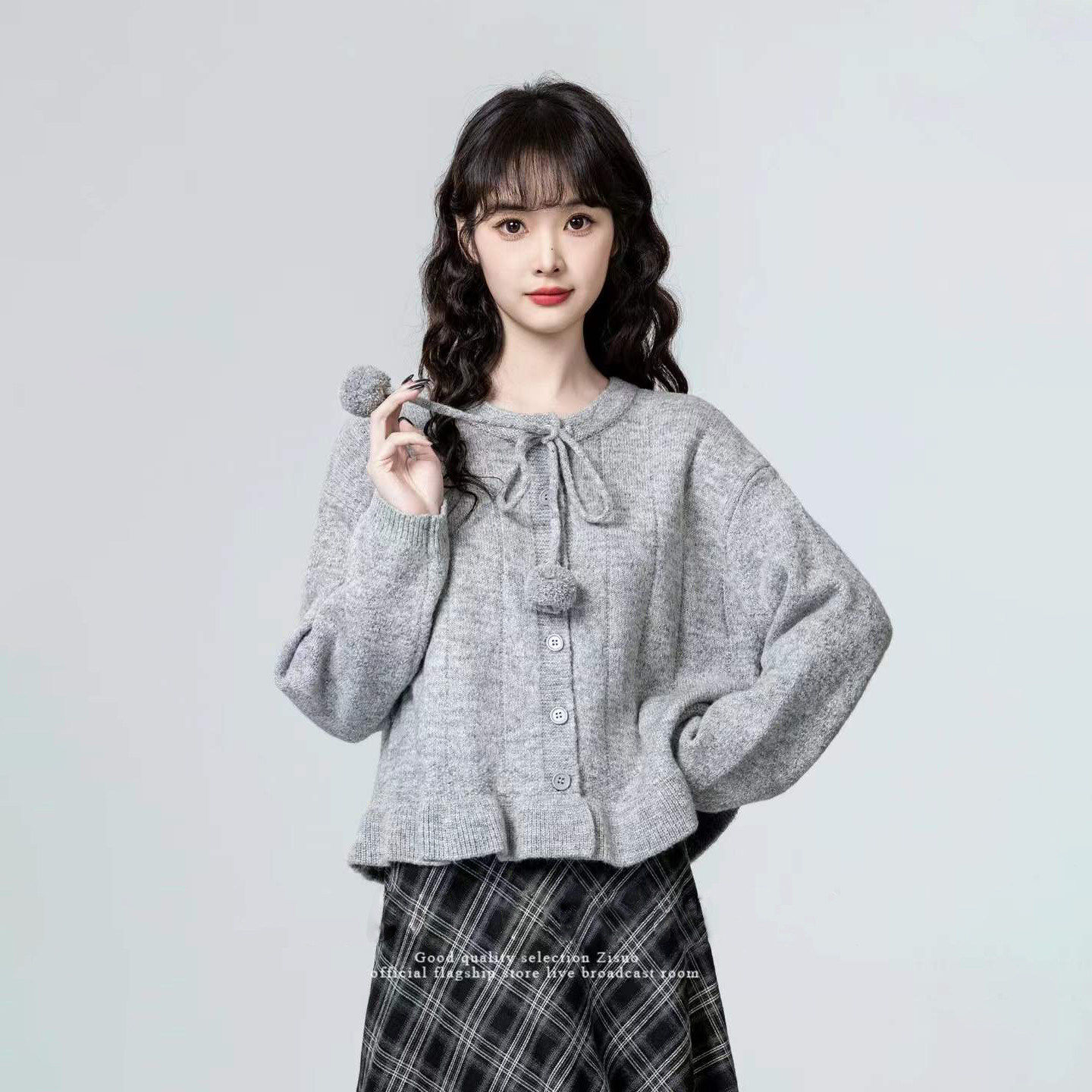 针织开衫毛衣外套女早秋2025新款巨好看设计感毛球上衣