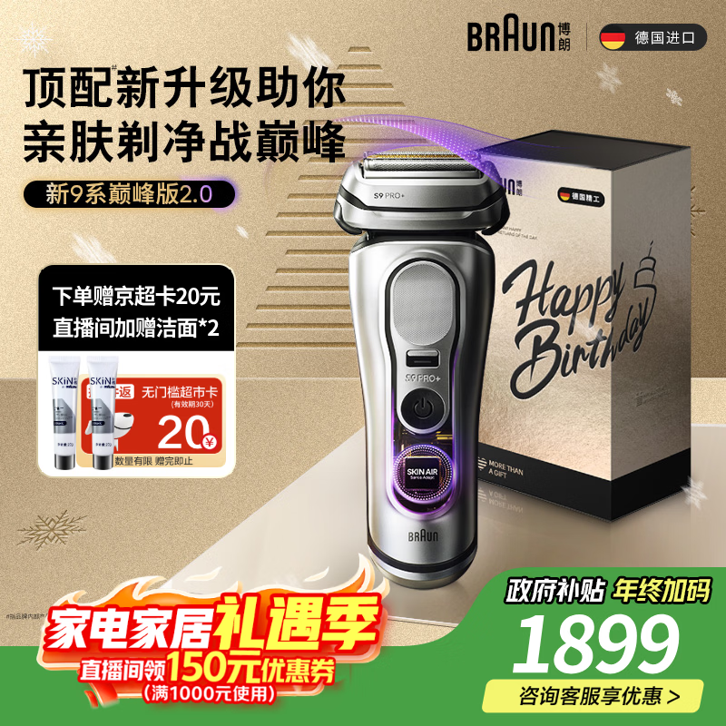 博朗9系巅峰版2.0整机德国进口往复式电动剃须刀刮胡刀送老公男朋友生日礼物 男