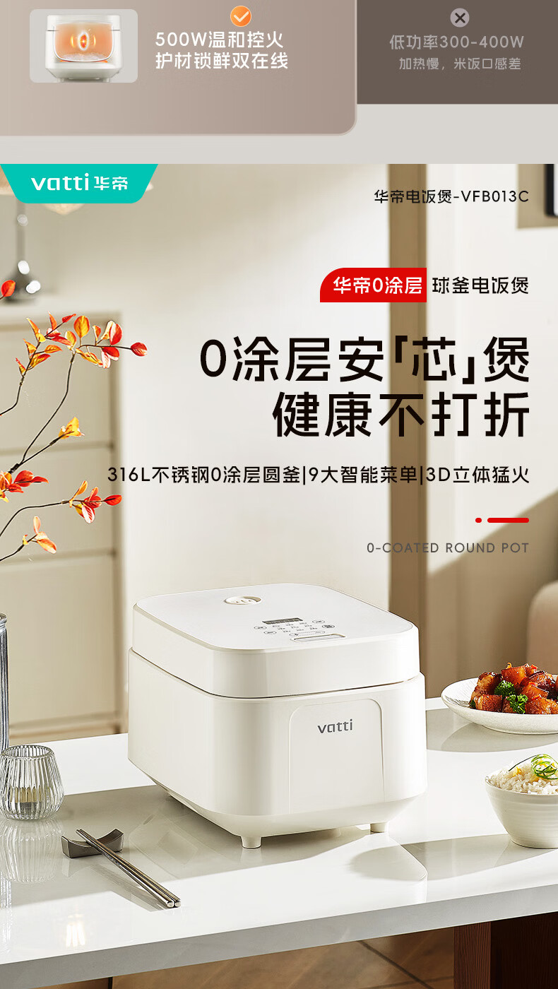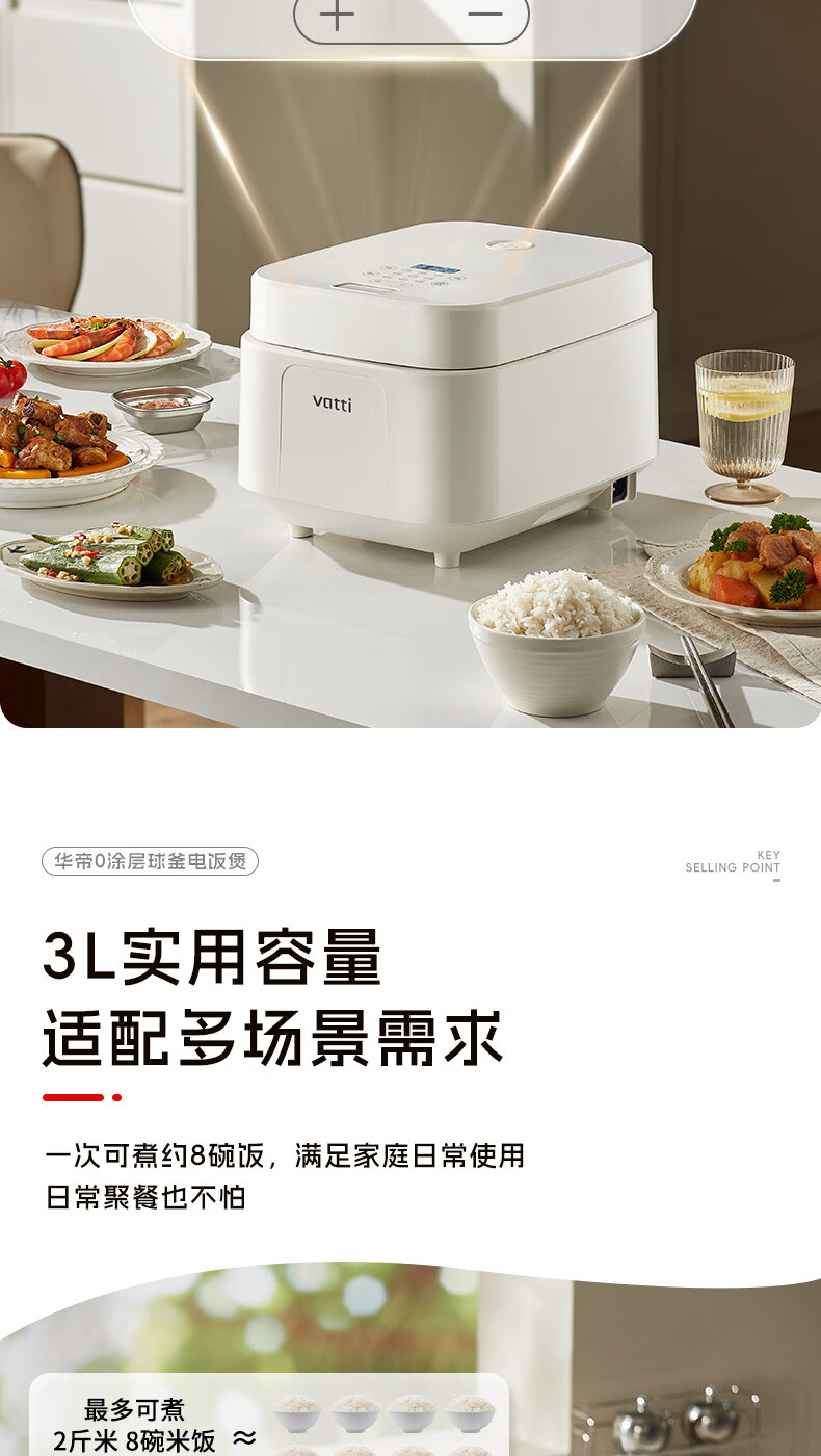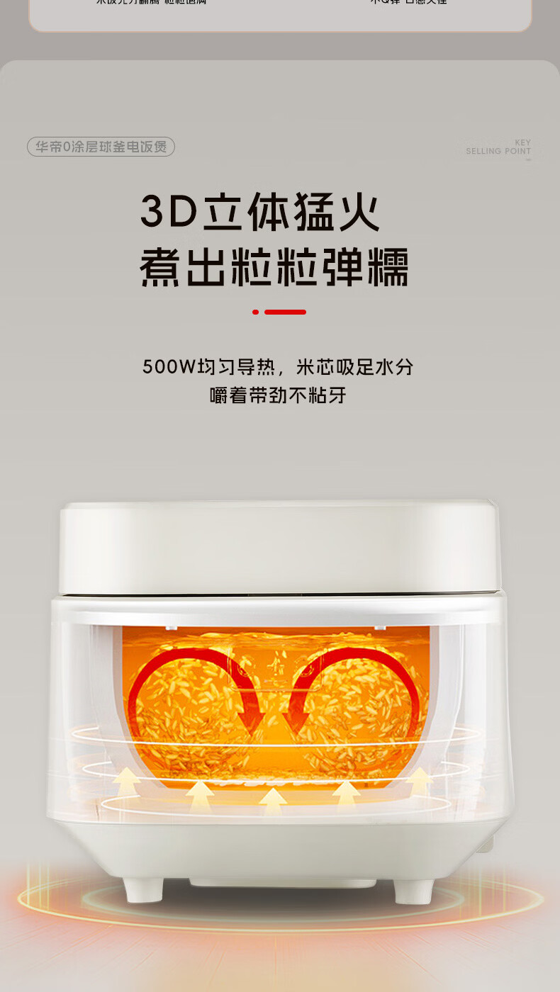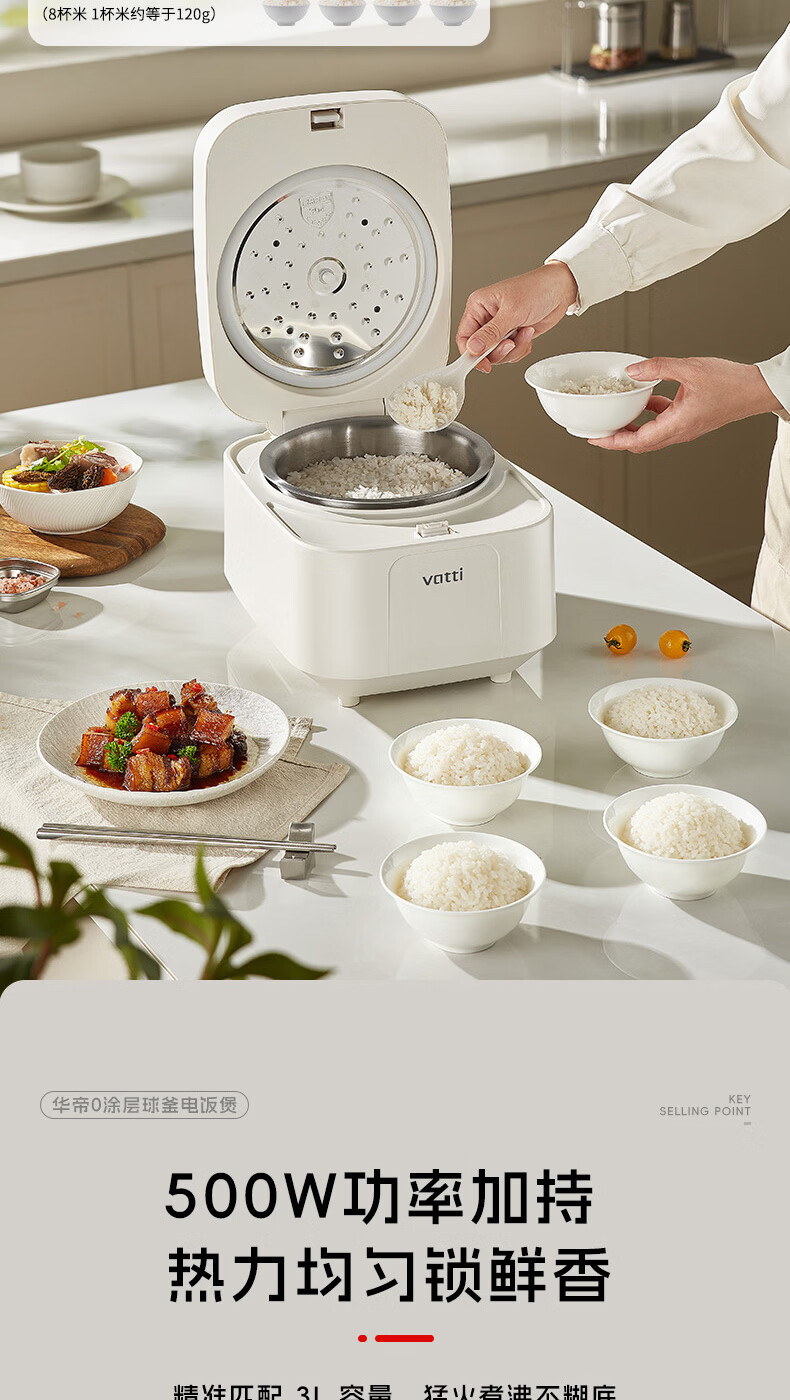 华帝(VATTI)0涂层电饭煲不锈钢球釜米汤分离电饭锅沥米饭低糖3L家用智能预约多功能还原糖健康养生蒸米电饭煲 【0涂层】升级款304不锈钢内胆+沥胆 3L