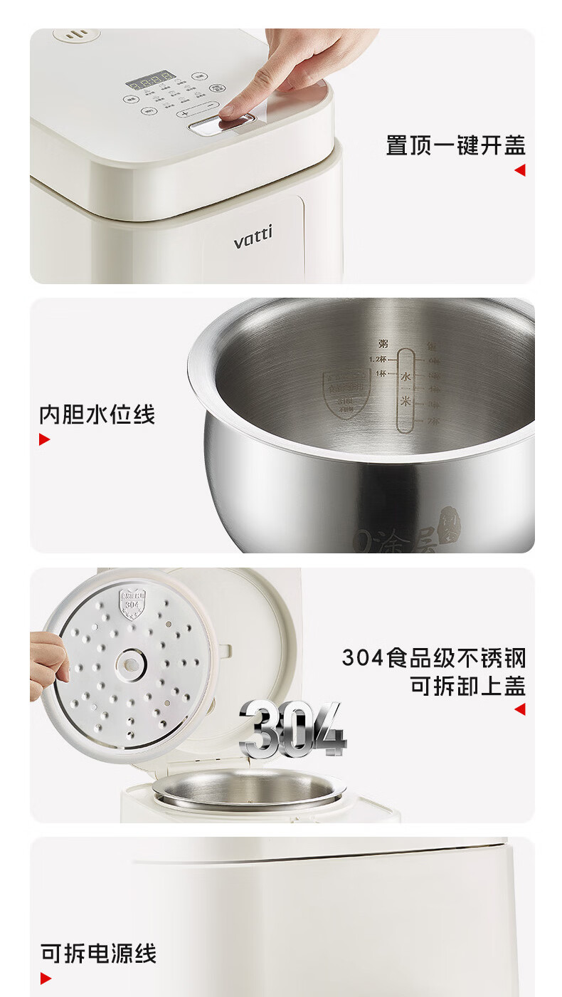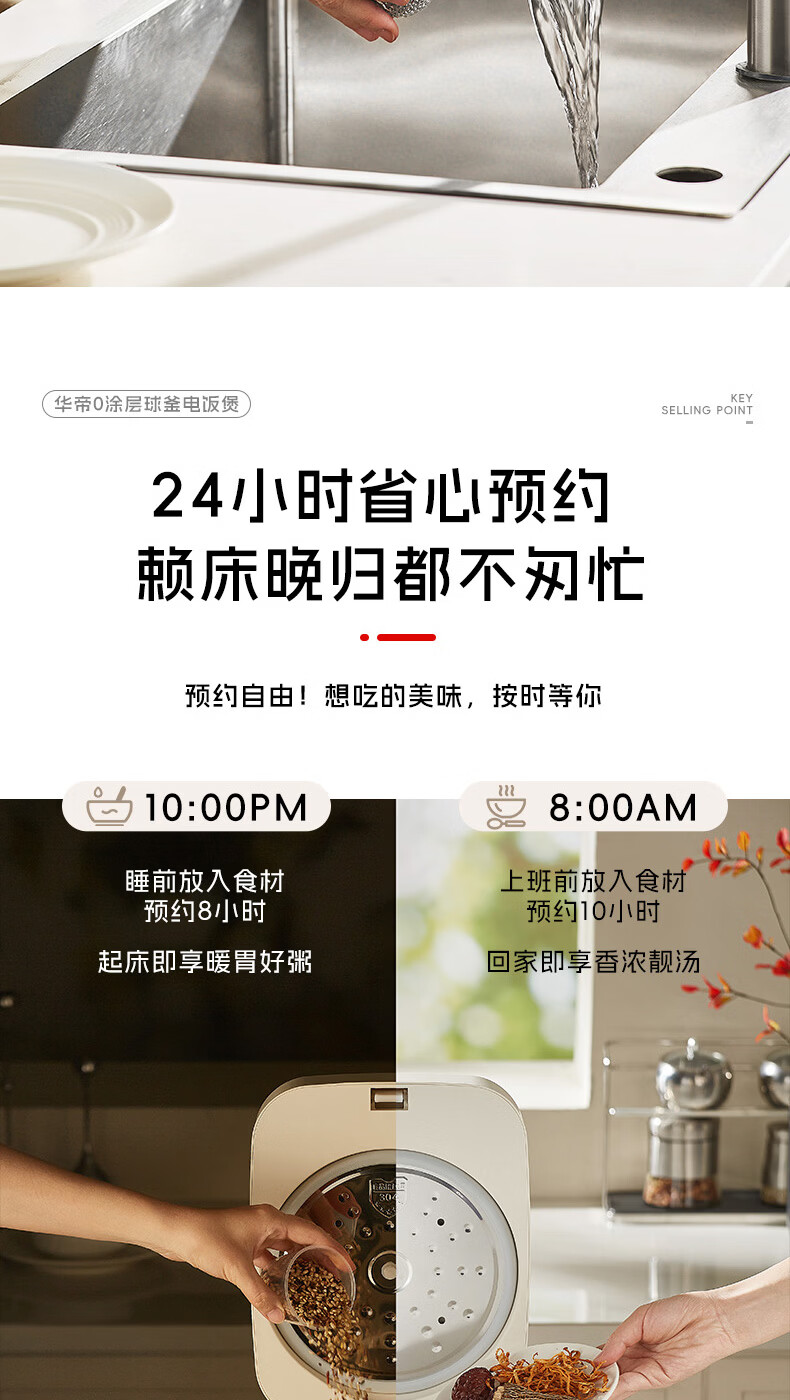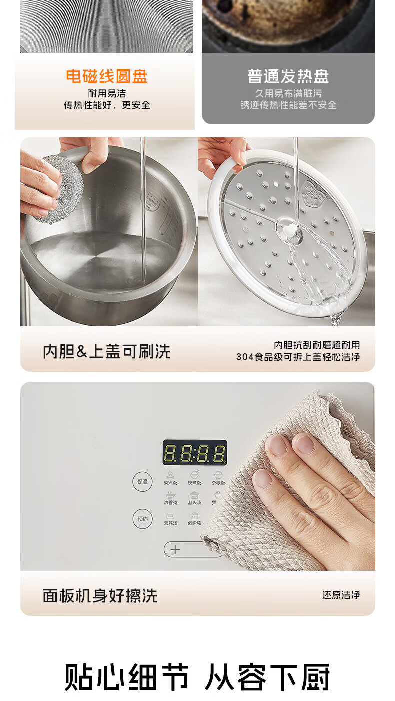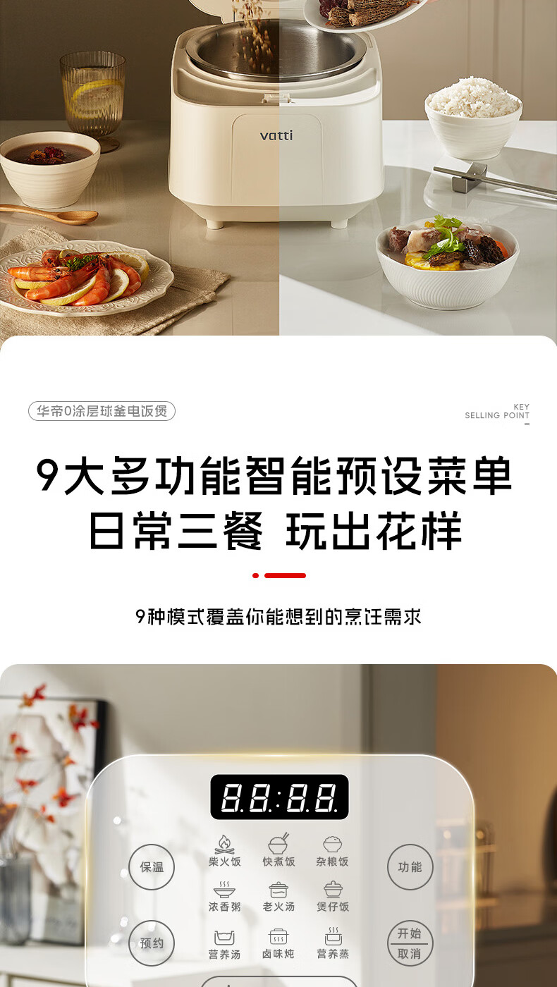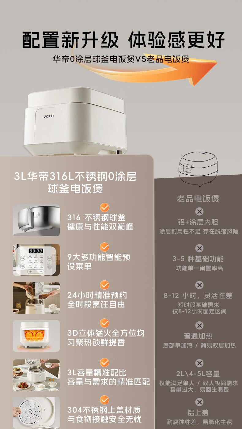 华帝(VATTI)0涂层电饭煲不锈钢球釜米汤分离电饭锅沥米饭低糖3L家用智能预约多功能还原糖健康养生蒸米电饭煲 【0涂层】升级款304不锈钢内胆+沥胆 3L