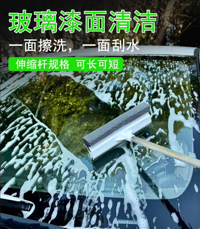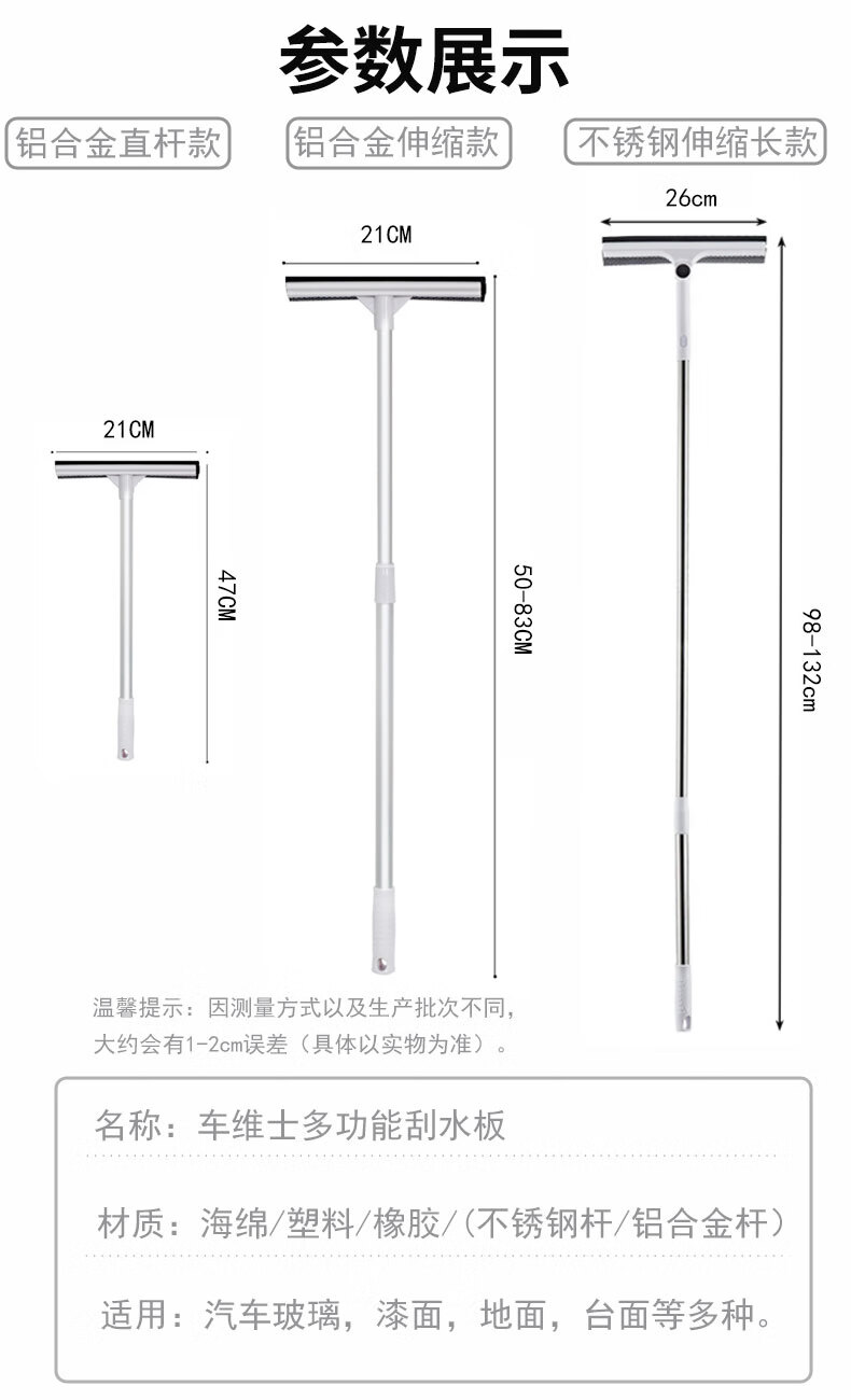 车维士汽车玻璃刮水板漆面刮水器伸缩洗车刮水刷擦车海绵刷车用家用刮板 【白色】不锈钢伸缩加长款
