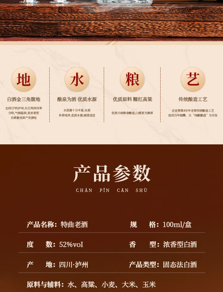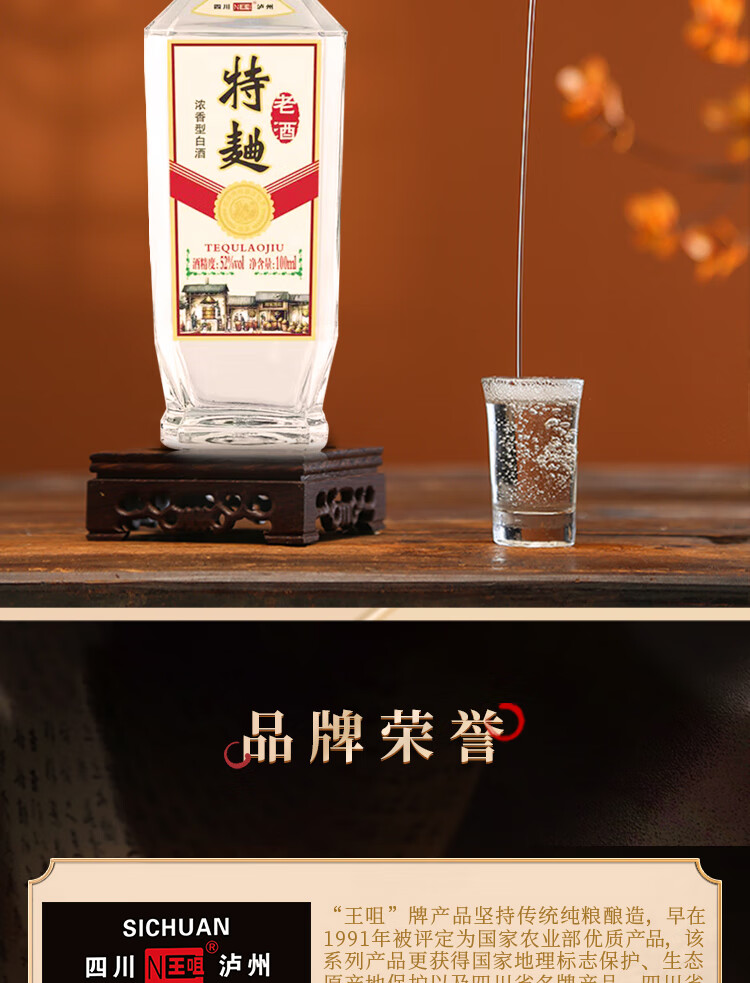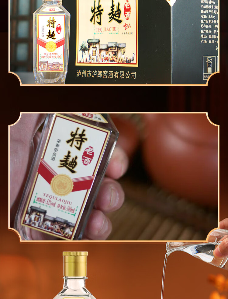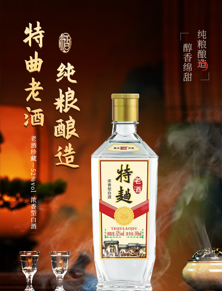 王咀特曲老酒52度100ml浓香型白酒 纯粮食酒 小酒小瓶 礼物 52度 100mL 6瓶