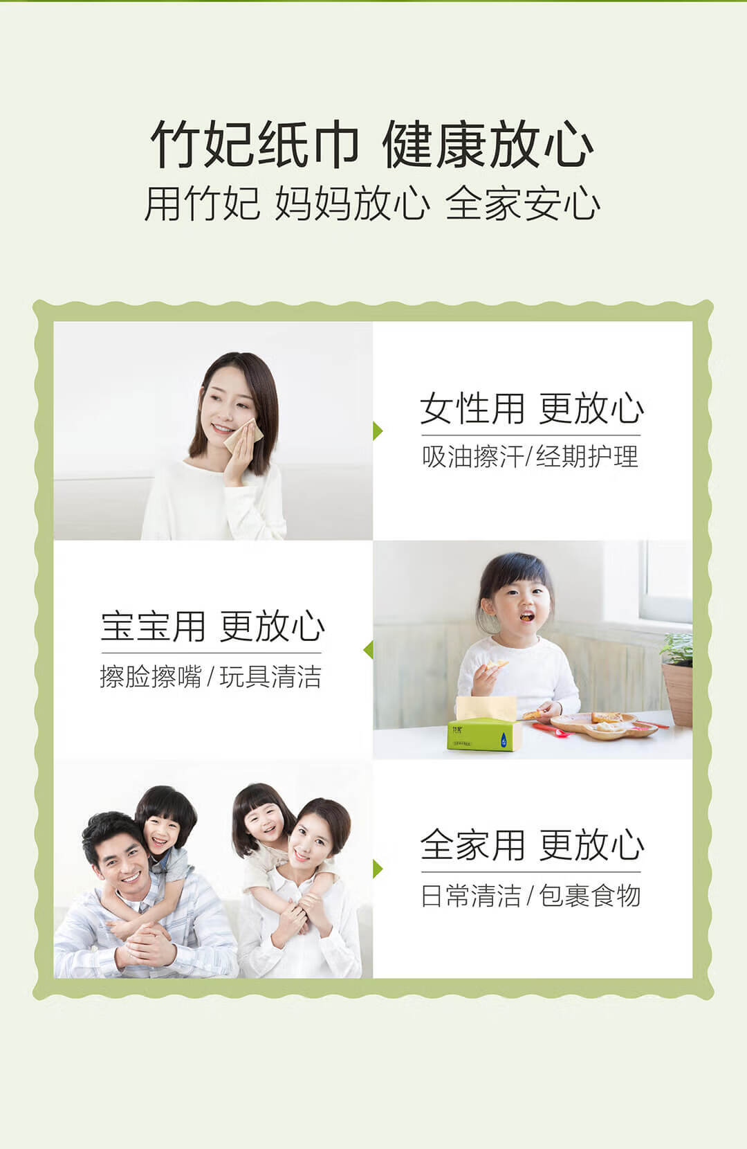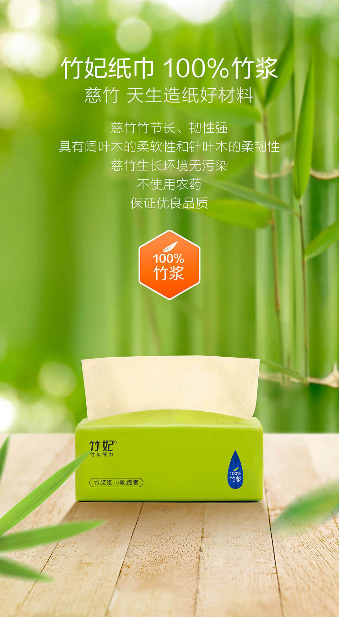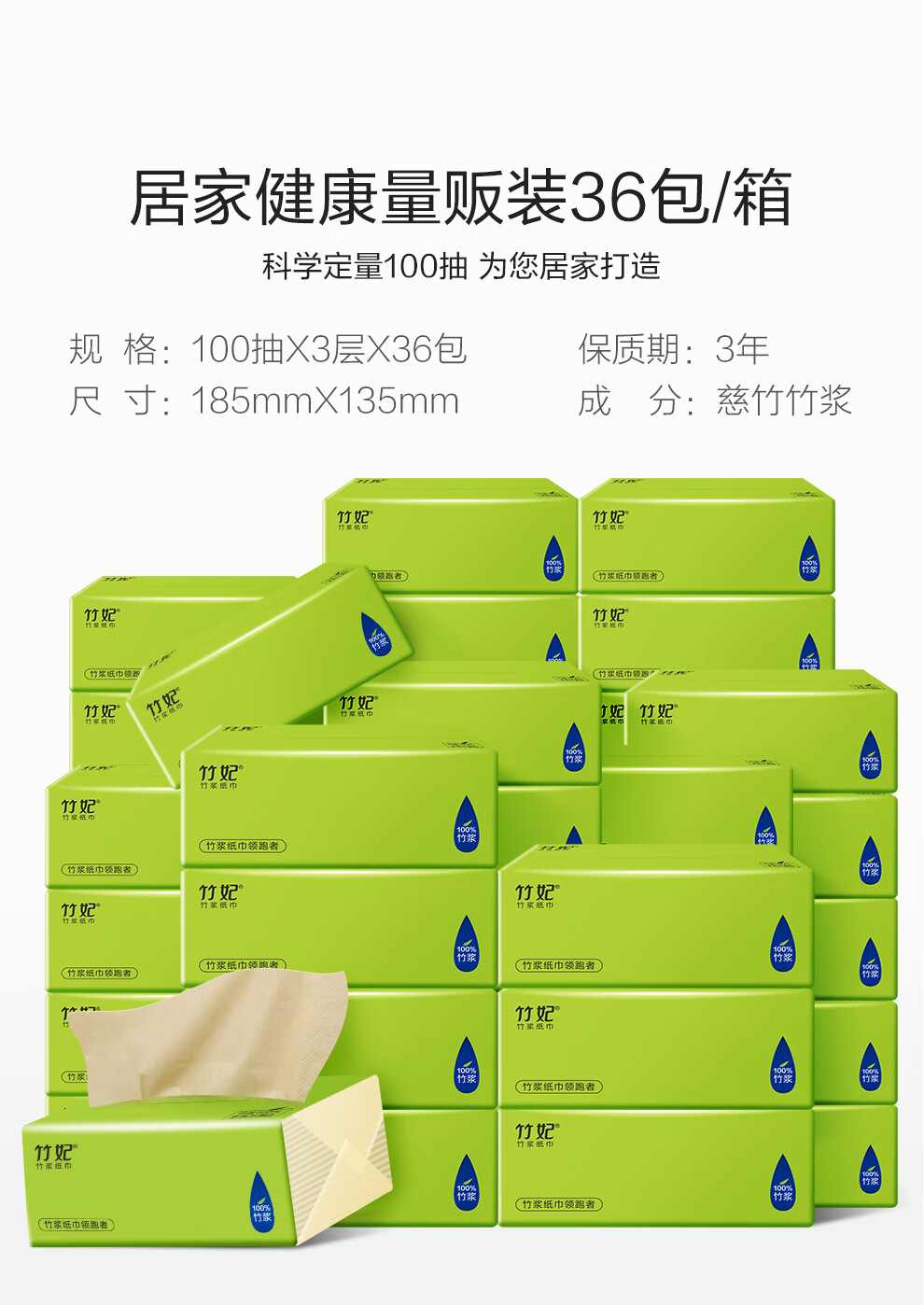 竹妃(zofee)抽纸 竹浆本色纸巾卫生纸抽纸整箱餐巾纸擦手纸婴儿面巾纸家庭装 3层 100抽*36包