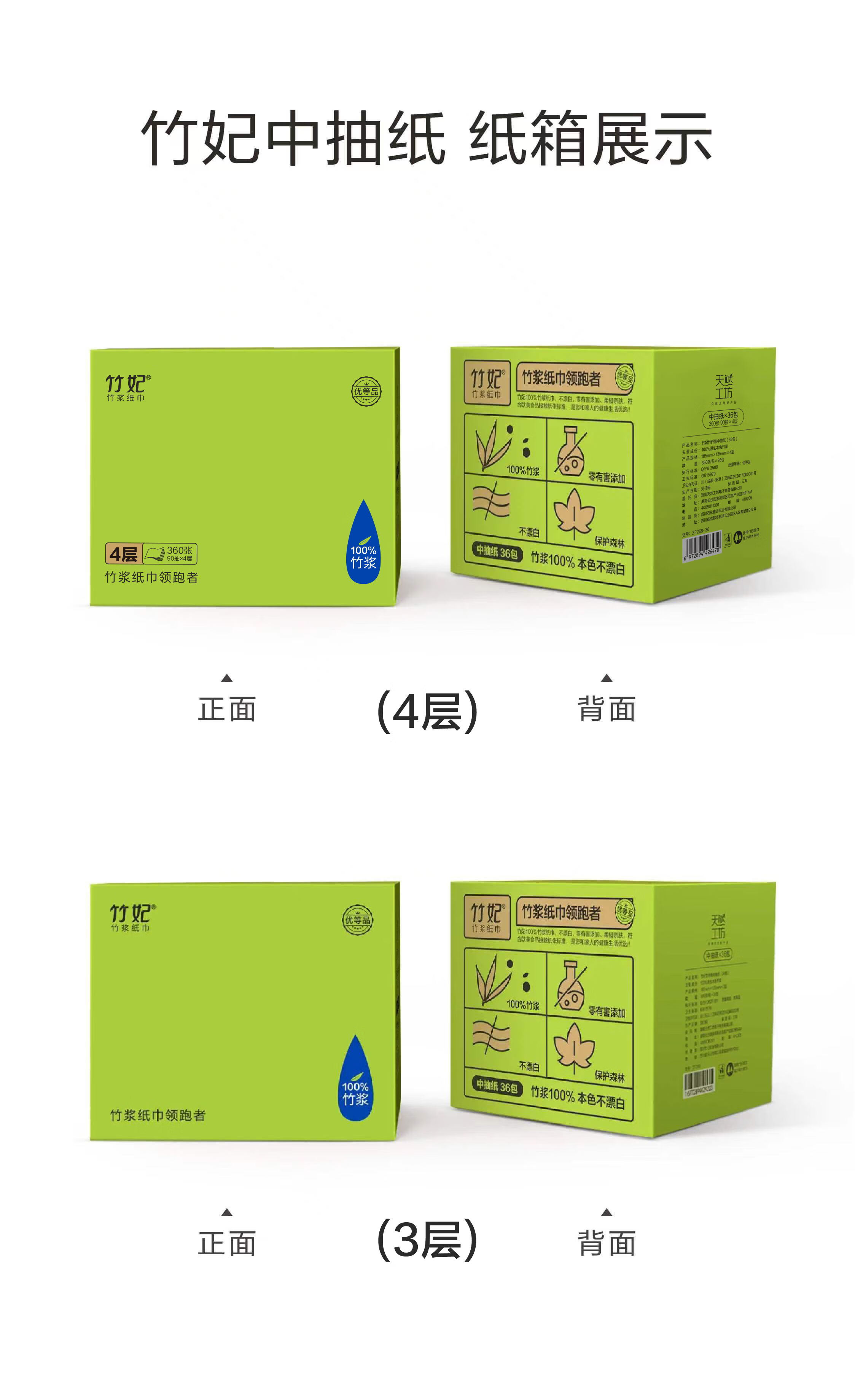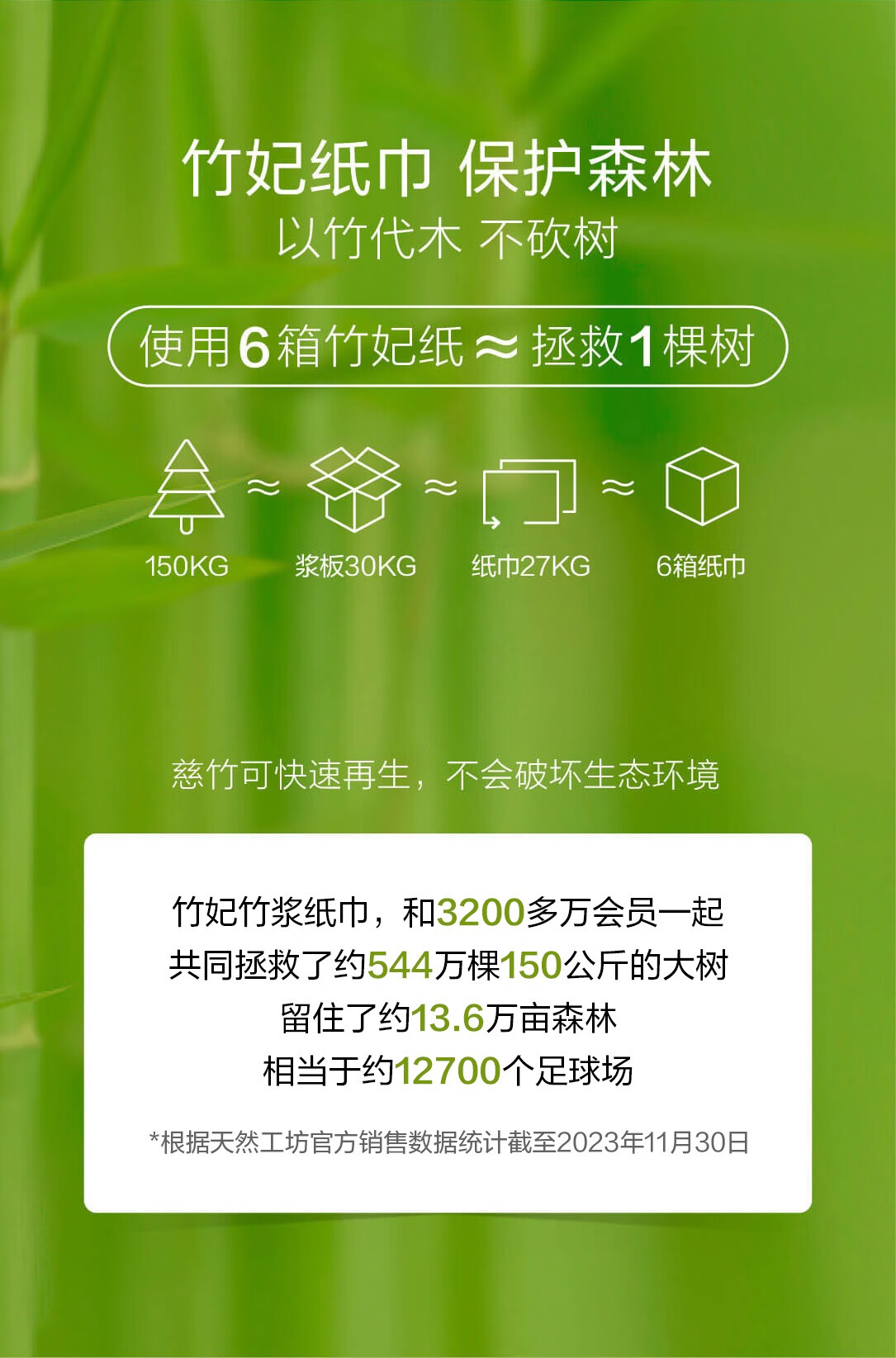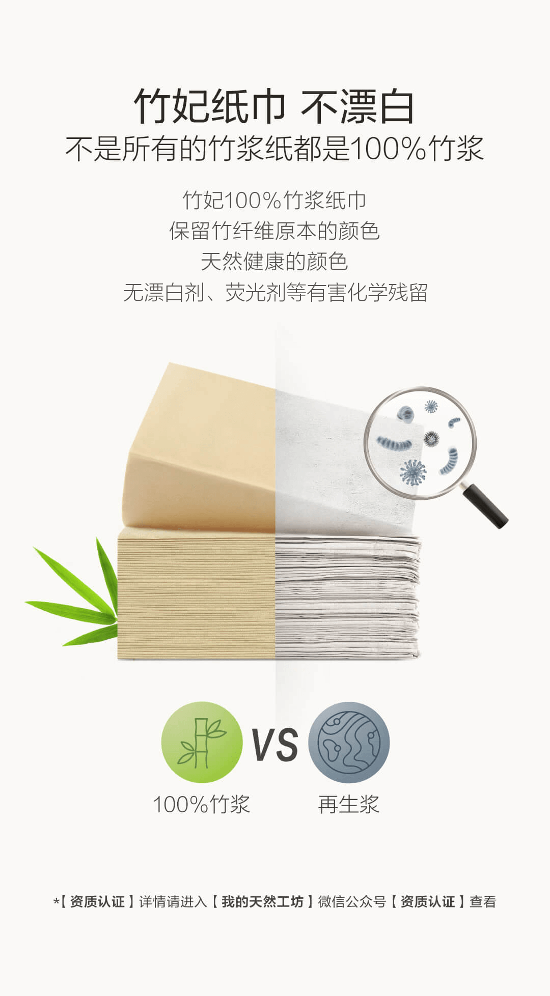 竹妃(zofee)抽纸 竹浆本色纸巾卫生纸抽纸整箱餐巾纸擦手纸婴儿面巾纸家庭装 3层 100抽*36包