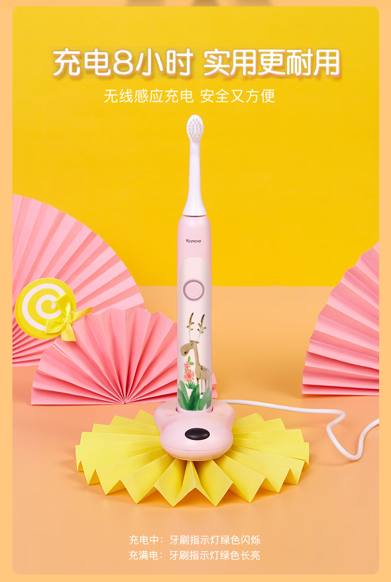科蒂斯儿童电动牙刷充电式声波软毛宝宝小孩男女自动牙刷3-6-12充电式牙刷 军绿色